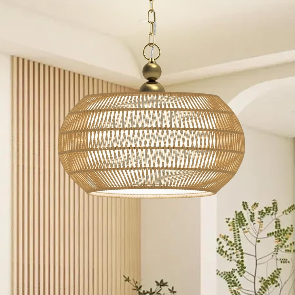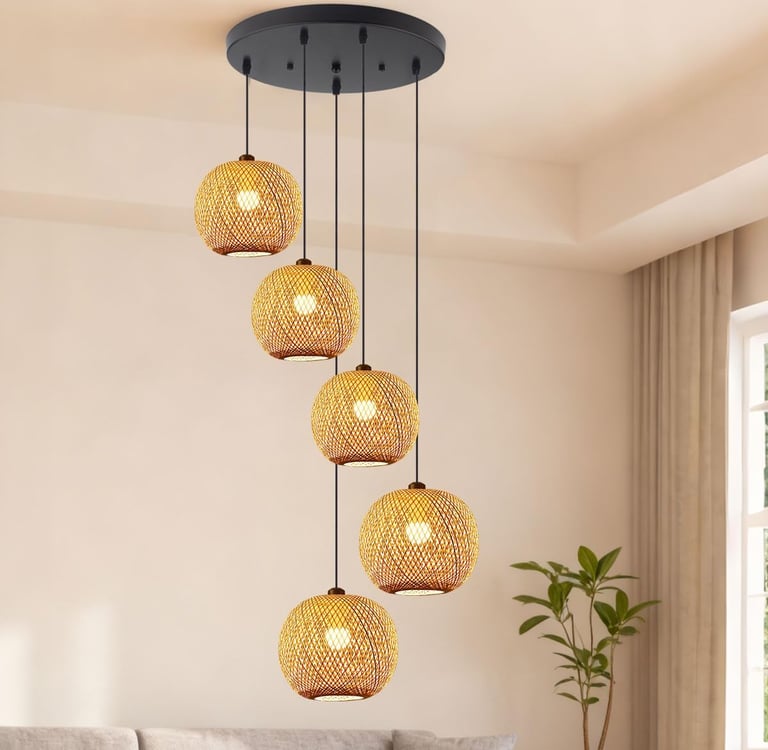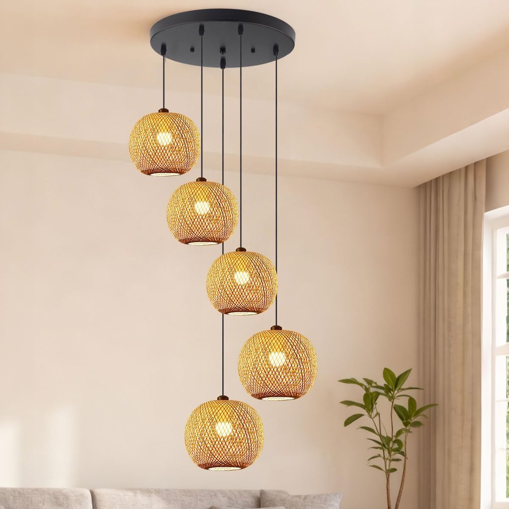 5-Light Woven Foyer Chandeliers for High Ceiling