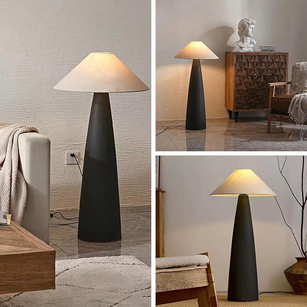 Handmade Wabi Sabi Ceramic Floor Lamp with Linen Shade