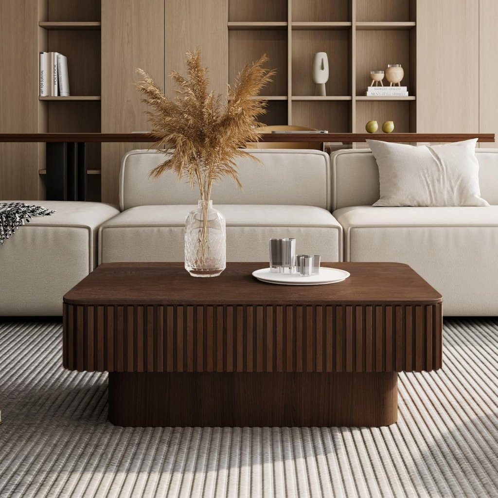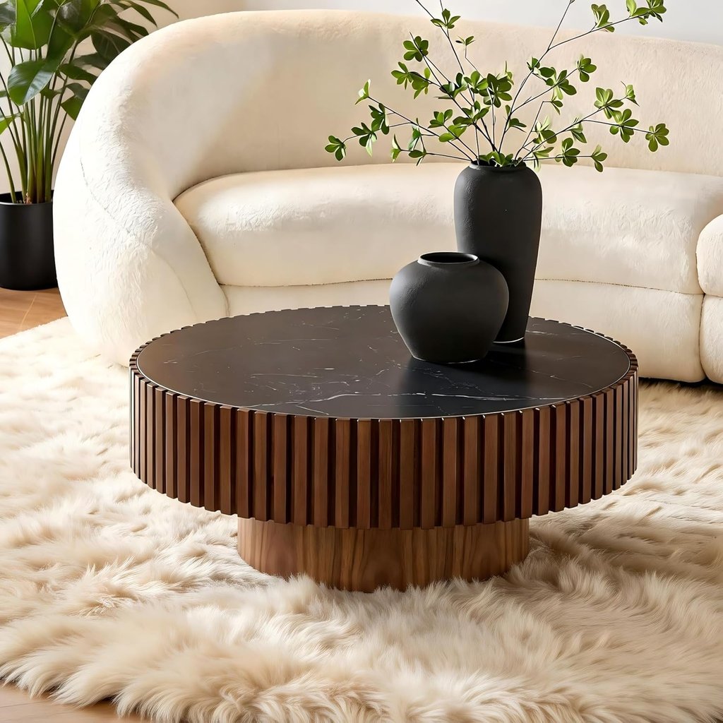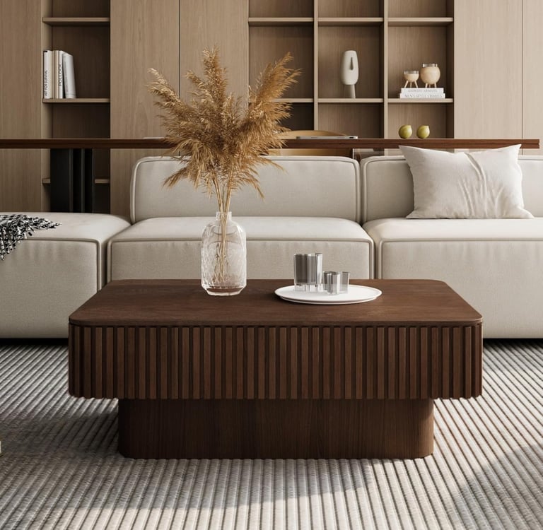 🤍 Curated Amazon Find: A dark wood fluted coffee table to ground your bright space.
