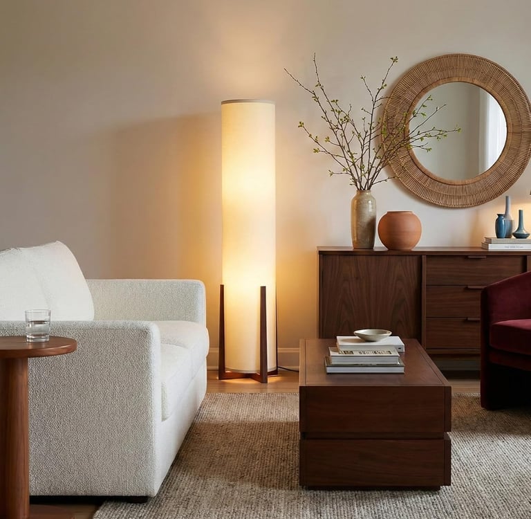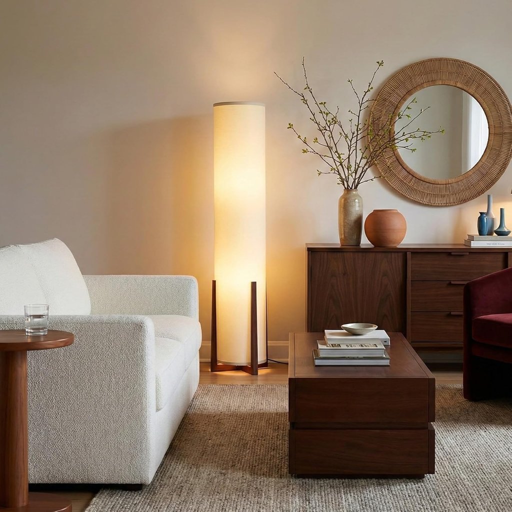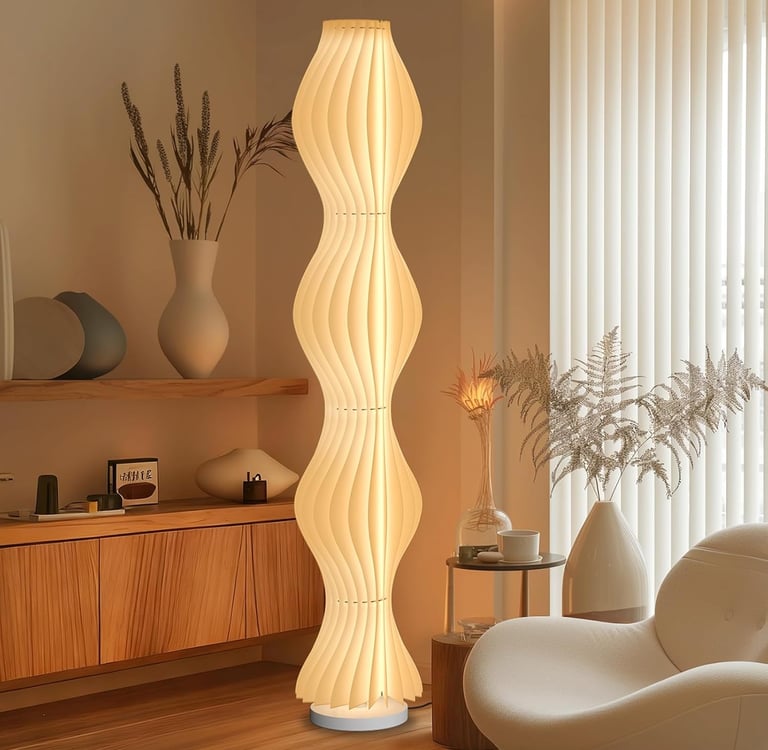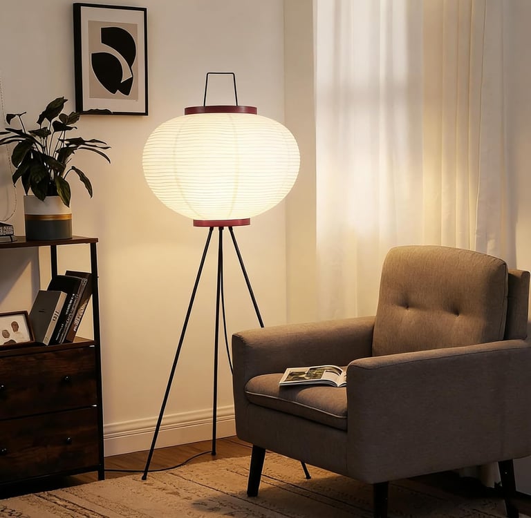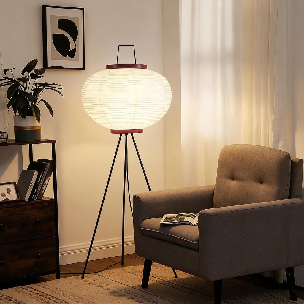 ✨ Get the Look: A pleated shade standing lamp or paper lamp.