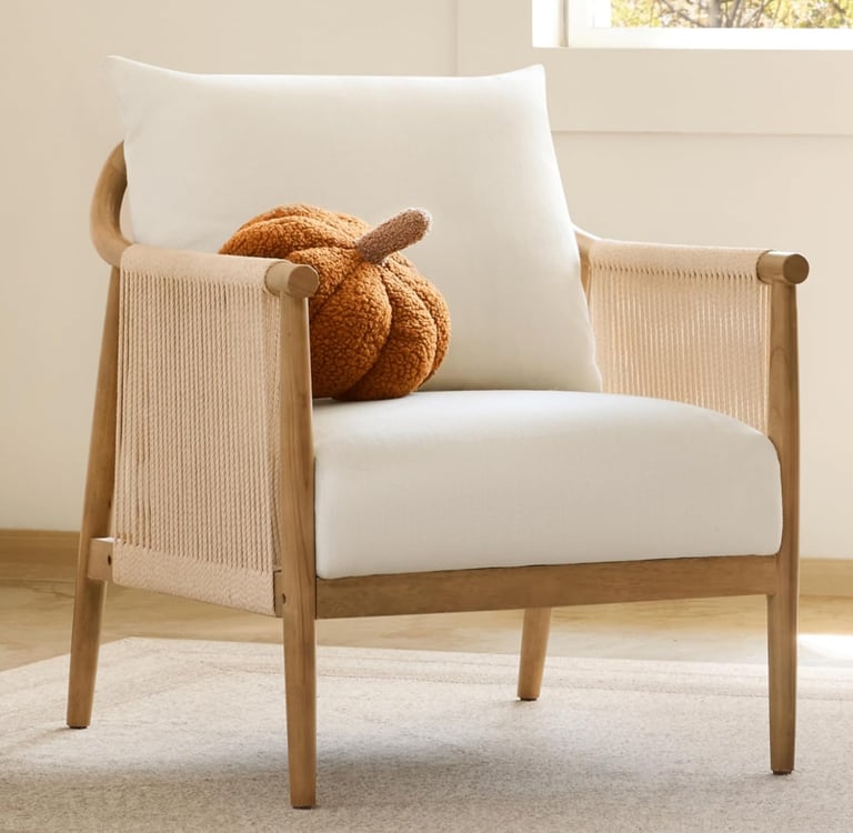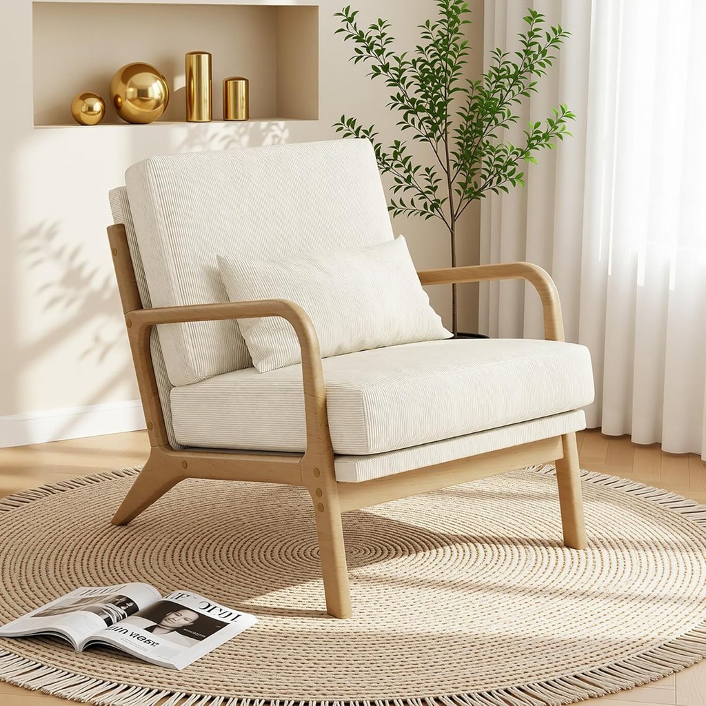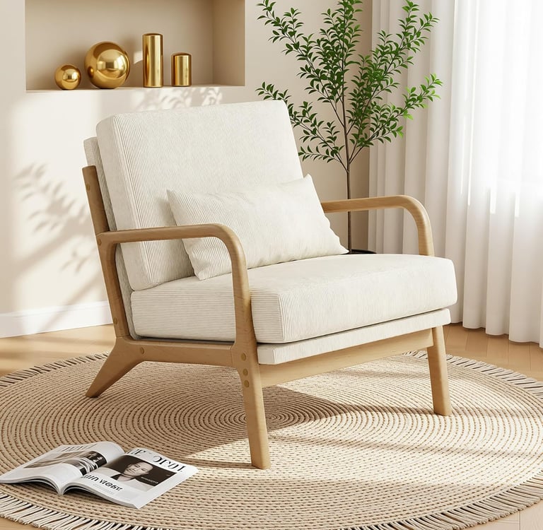 Armchair with Solid Wood Frame & Lumbar Pillow