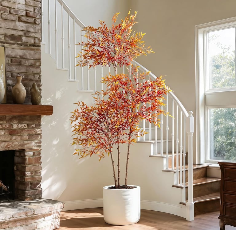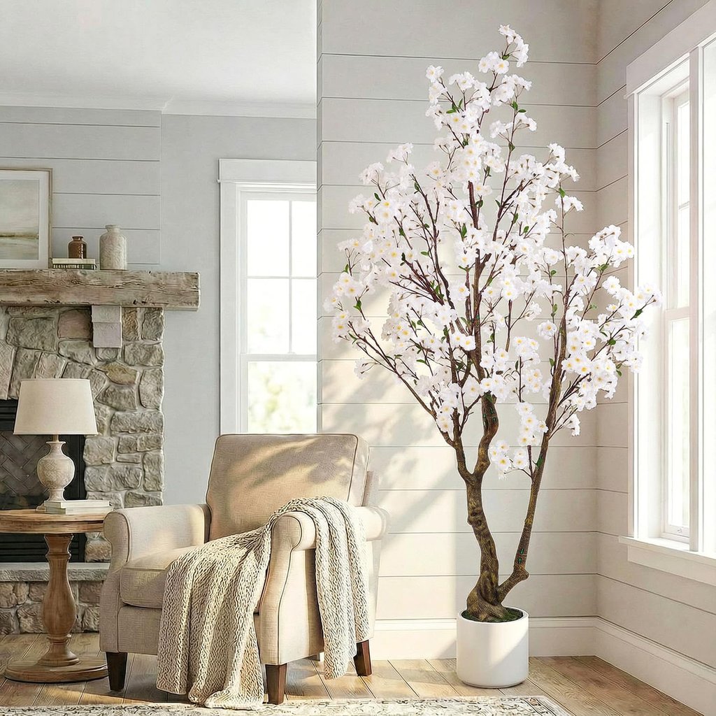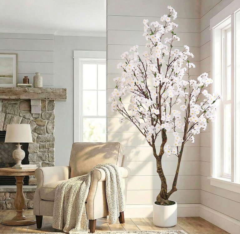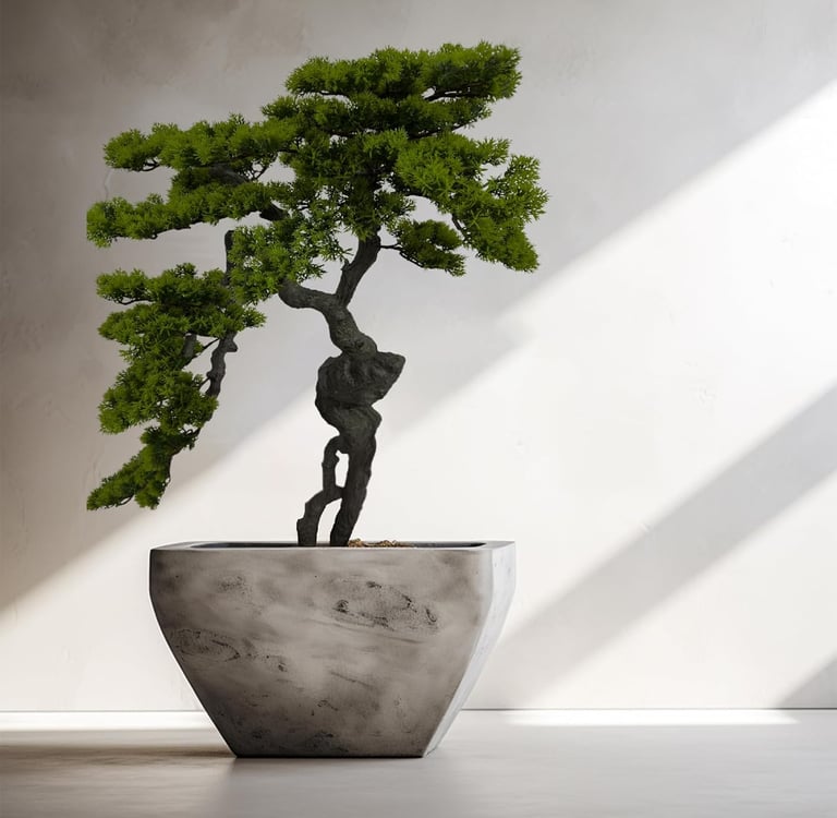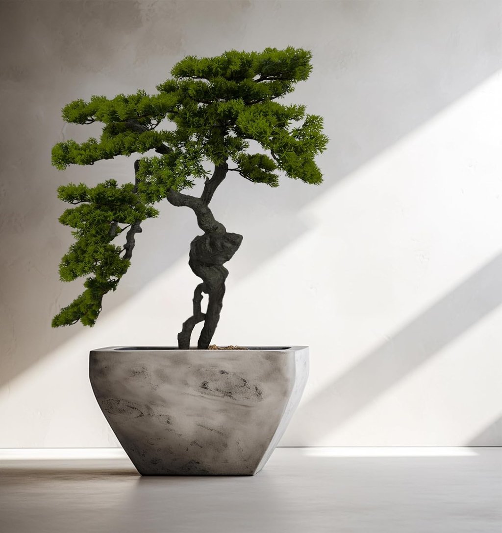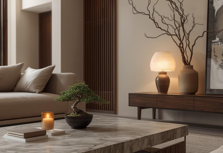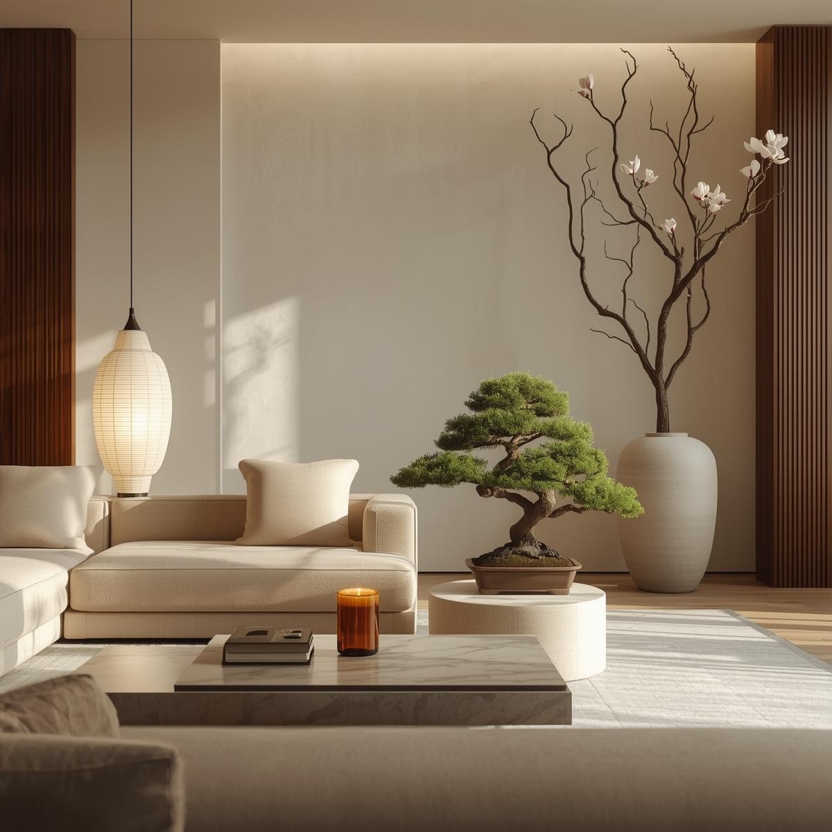 Japandi is about quality over quantity when it comes to nature. Instead of cluttering your space with dozens of small plants, opt for one elegant statement tree, like a faux olive tree or a bonsai.