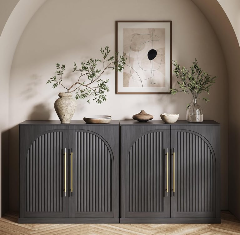 Set of 2 Modular Sideboard with Double-Arc Wood Doors