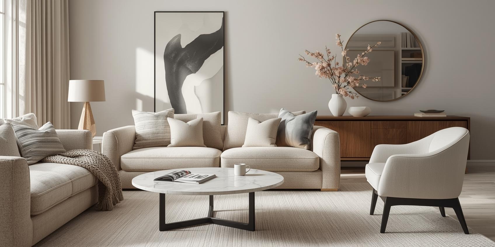 Too many straight lines make a neutral room feel rigid and cold.